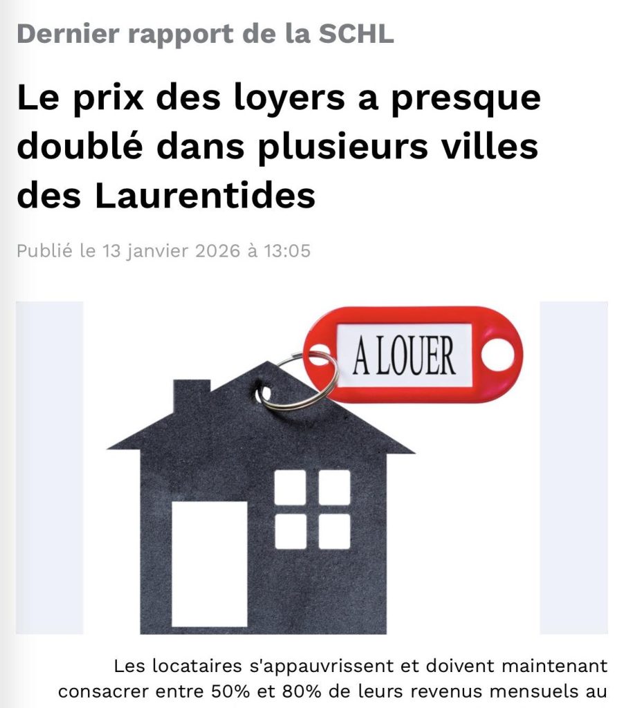 Les locataires des Laurentides continuent de subir les conséquences de la rareté et de l’inabordabilité. Le loyer moyen du marché a augmenté de façon exorbitante depuis 2018 dans plusieurs municipalités des Laurentides: 90% dans la ville de Sainte-Agathe-des-Monts représentée par France-Élaine Duranceau, 96% à Saint-Sauveur, 80% à Mirabel,…