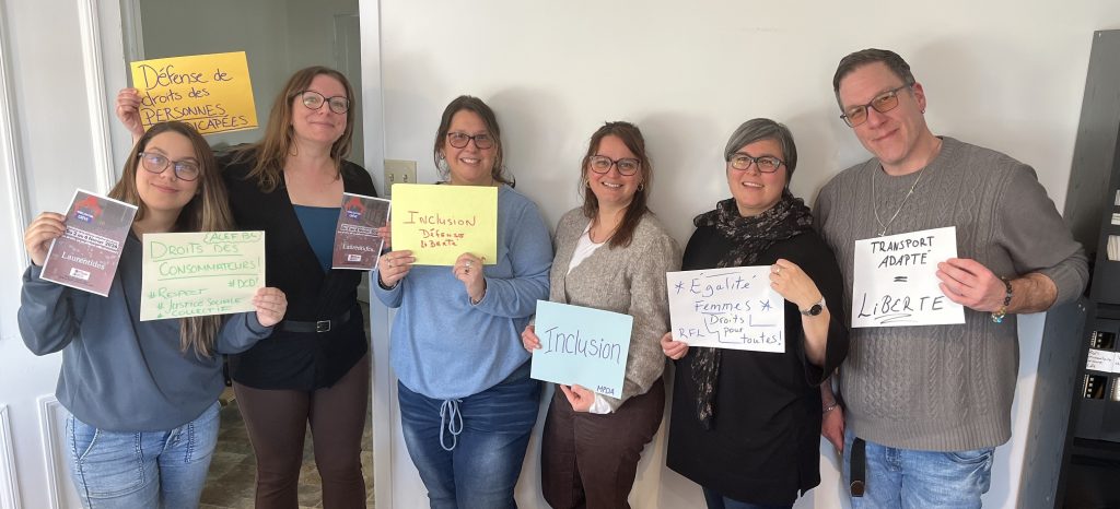 Les groupes en défense collective des droits des Laurentides participent à la campagne de mobilisation Les droits, ça se défend collectivement! lancée par le Regroupement des organismes en défense collective des droits. Une première rencontre avait lieu le 4 février entre des représentant.es du milieu qui ont échangé sur leurs défis et leurs réalités, particulièrement en ce qui concerne le sous-financement qui freine la réalisation de leur mission.
